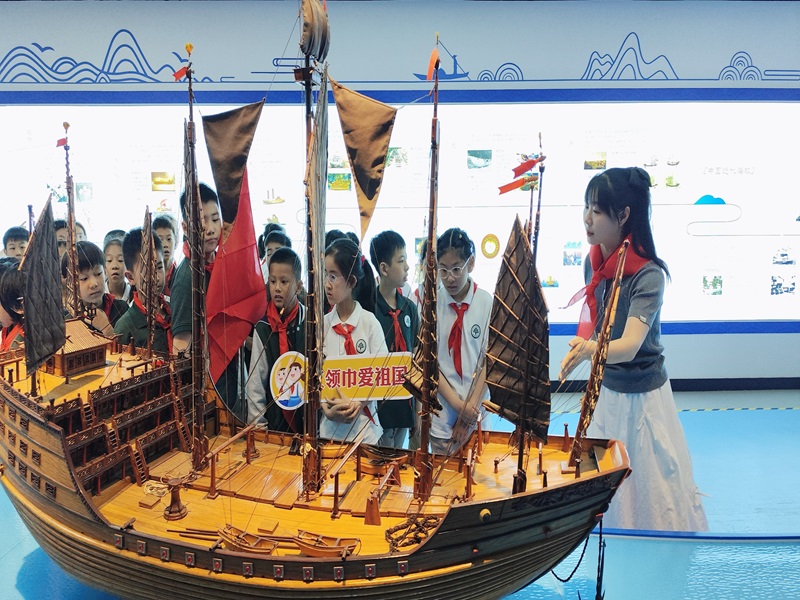 活动伊始,学生们在专业讲解员的引导下,参观了江苏省交通运输行业船文化中心馆的展览区。这里展示了从古至今各种类型的船舶模型,以及与船舶相关的航海工具和历史文献。学生们对这些展品表现出浓厚的兴趣,不时提出问题,讲解员也耐心地一一解答。