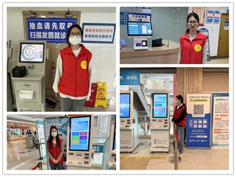 而在门诊签到机旁,志愿者们同样发挥着不可或缺的作用。他们时刻关注着前来签到的患者,及时为他们解答签到流程方面的疑问。对于一些不太清楚操作的患者,志愿者们会主动上前引导,帮助他们顺利完成签到手续,让患者在就医的第一步就感受到贴心、周到的服务。