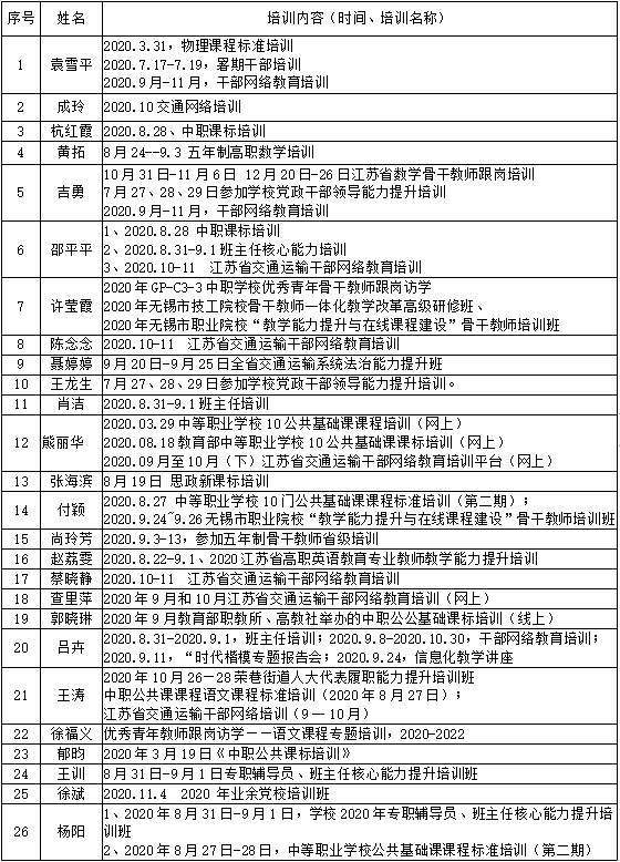 2020年度基础教学部教师参加培训情况
