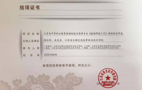 结业证书-江苏省中等职业教育船舶制造与修理专业〈船舶焊接工艺〉课程标准开发
