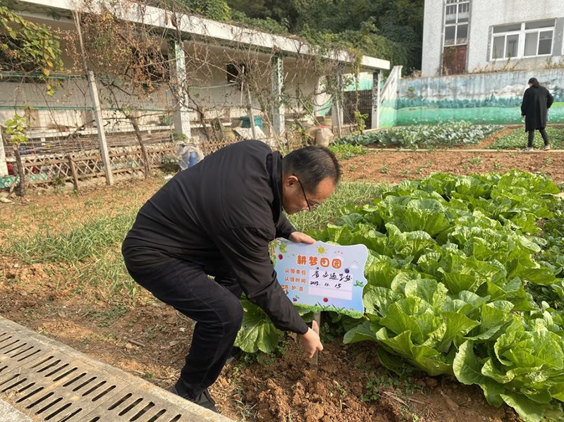 仪式结束后,徐书记带领学生代表进行了耘梦田园认领,同学们积极劳作的热情,耕作场上一片欢声笑语,经过大家的共同努力,很快便完成了两块土地的培育施肥工作,同学们亲手洒下的一颗颗希望的种子并约定到了收获的季节再次劳动。