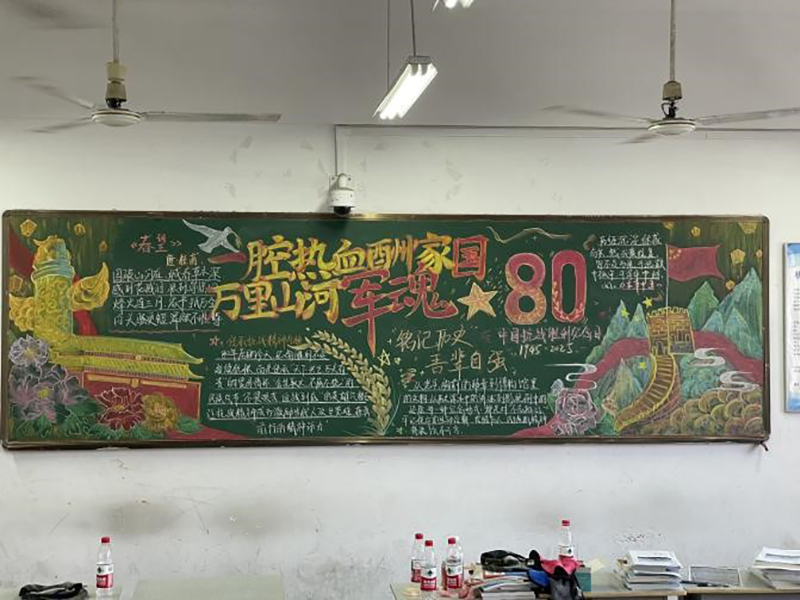 今日,MILAN.COM机电工程学院的25级新生教室内焕新出彩,一幅幅主题鲜明的黑板报凝聚了新生们的心血,以“庆祝中国人民抗日战争胜利80周年”为统一主题的视觉教育阵地正式亮相,成为校园内一道厚重而鲜活的红色风景线。