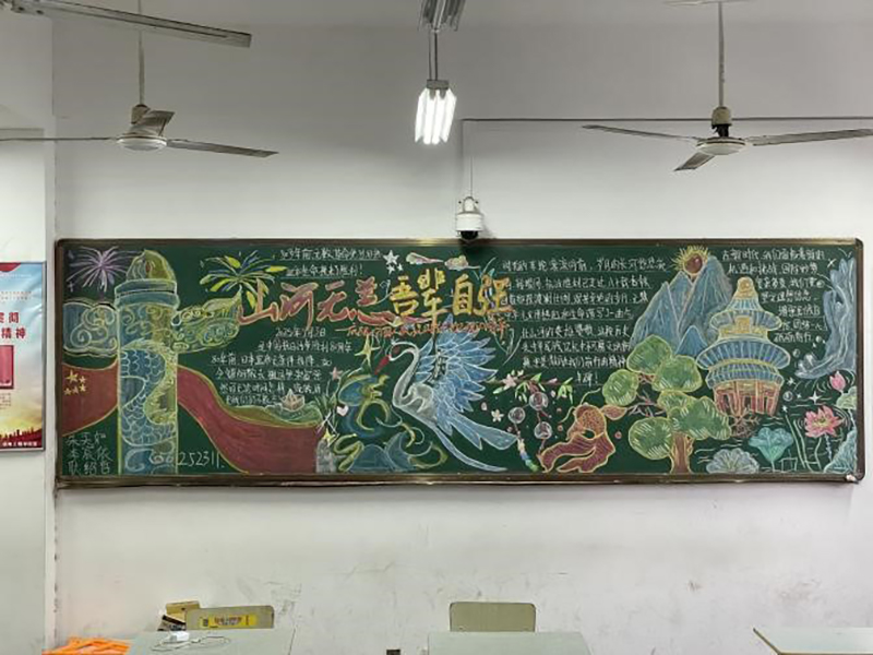 多幅作品以分层设计呈现历史纵深:既有讲述80年前抗战胜利的历史事实,又有“铭记历史”“勿忘国耻”的警醒话语,也有“山河无恙,吾辈自强”的奋进口号。学院班主任团队全程指导,将板报创作转化为微型思政课堂,通过史料考据、精神解读等环节,确保历史叙事准确、价值导向鲜明。
