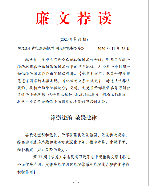 廉文荐读第32期——善于运用法治思维法治方式正风反腐