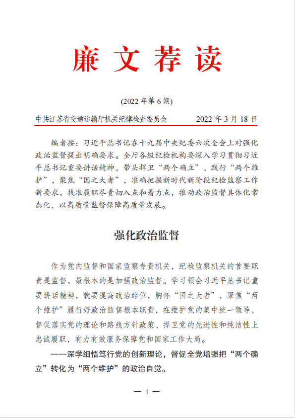 2022年廉文荐读第6期——强化政治监督