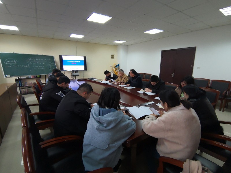 道路桥梁教研室党支部书记领读了《中国共产党第十九届中央委员会第四次全体会议公报》;党总支书记徐建新主持了会议并作了讲话。