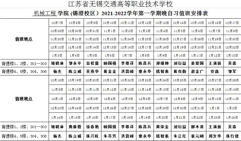 锡澄校区2020-2021学年第二学期升旗仪式安排