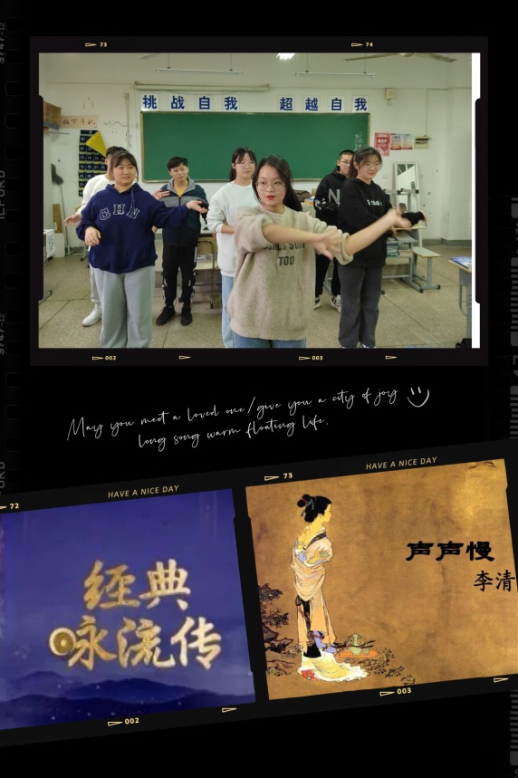 演练的条件虽简陋,但同学们浸润在美妙的经典旋律中,感受着中华文化之美的永久魅力。同学们在诵读经典诗词中,不断了解优秀的中华文化和民族精神,从而产生民族自豪感和爱国主义情思。