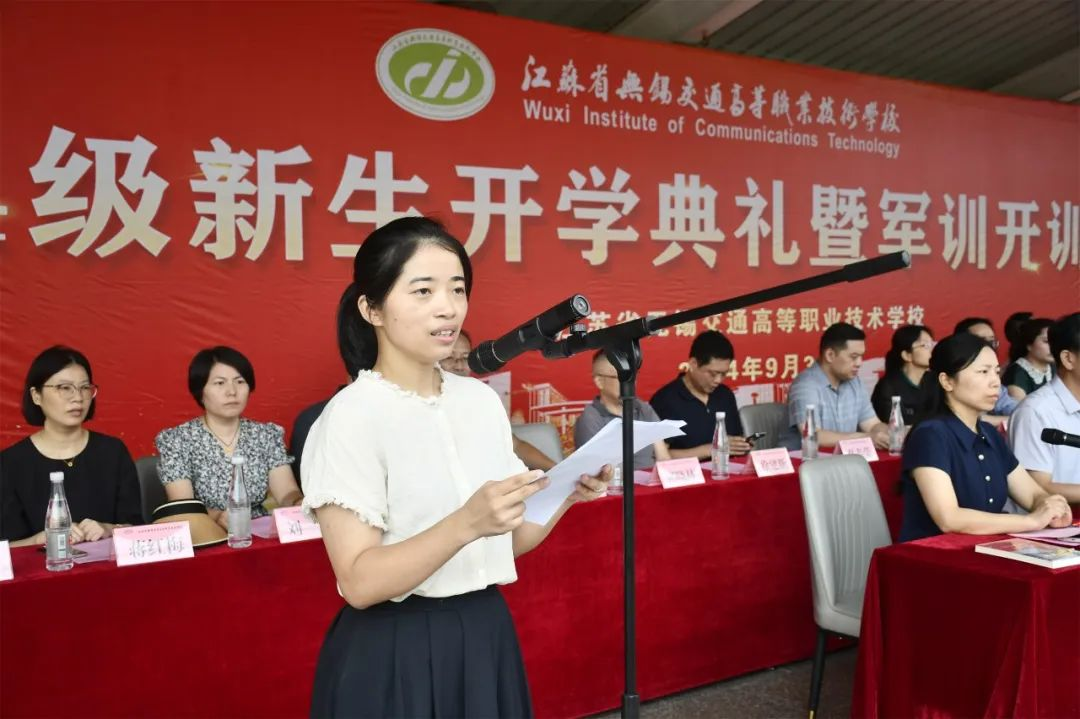 9月3日上午,学校迎来2024级新生开学典礼暨军训开训仪式。全校师生齐聚操场,以饱满的热情和昂扬的斗志,共同见证这一庄严而神圣的时刻。学校党委副书记、五级职员朱雨兰,武警驻锡部队副支队长刘坚,学校党委委员、副校长耿兴华、范次猛、王珏出席仪式。本次开训仪式由学校党委委员、副校长吴雪琴主持。