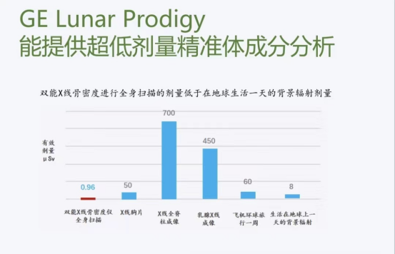 GE Lunar Prodigy能提供超低剂量精准体成分分析。全身扫描人体成分分析,可测量人体全身肌肉和脂肪组织,监控减肥效果及运动员身体素质评价。多用于肥胖症、肌少症、神经厌食症、类风湿疾病等患者。