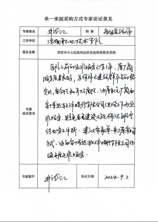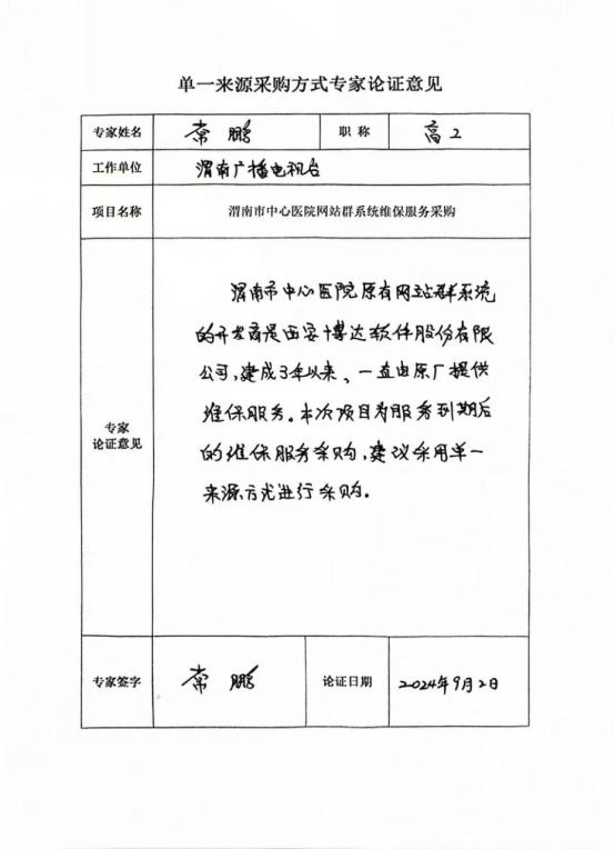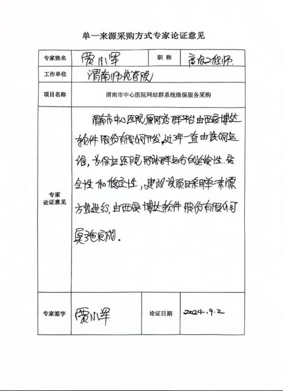 本院门户网站由西安博达软件股份有限公司开发建设并已连续服务3年,期间服务质量较好,为保证医院网站运行的延续性、安全性和稳定性,建议采用单一来源方式进行采购。