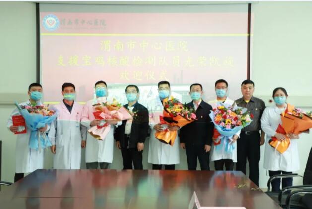 4月11日下午,市中心医院举行支援宝鸡核酸检测5名队员欢迎仪式。党委副书记党继革、党委委员李红兵以及相关职能科室、门诊部、检验科负责人共同参加。党委委员王保全主持仪式。