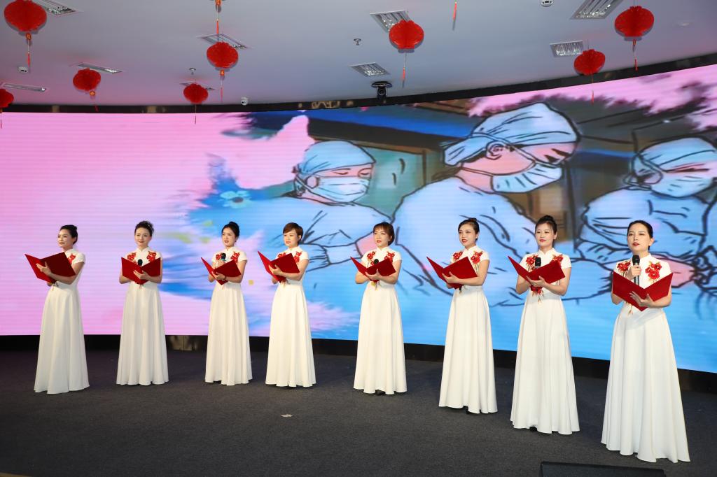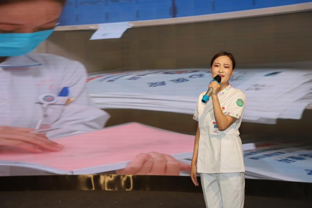 诗朗诵《白衣天使,生命之光》,涌动着生命的激情、洋溢着蓬勃的朝气,表达出渭医护理人不畏艰险、甘于奉献的铿锵誓言。