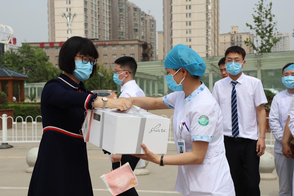 物业公司工作人员为全院50多个科室的护士们送去了节日蛋糕,让大家度过了一个有意义的节日。工作人员对全力以赴做好临床护理工作的护士们表示深深敬意,蛋糕发放过程中,那一声声“祝大家节日快乐”,传递着深深的关爱。白衣天使们手捧甜蜜的蛋糕,绽放的笑容更加美丽动人。