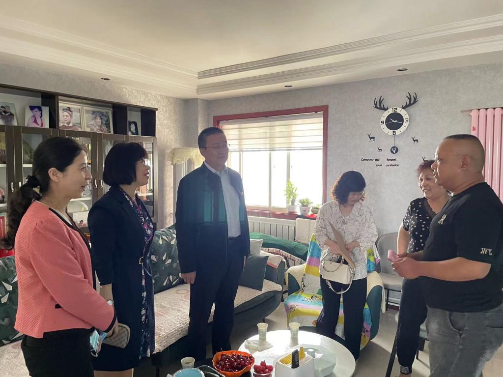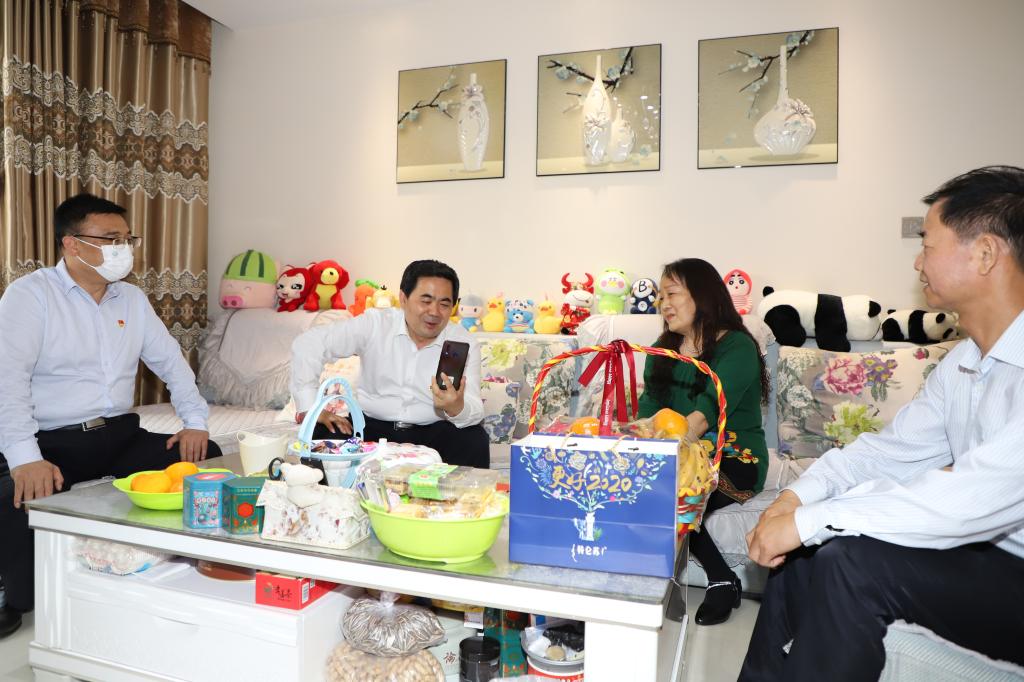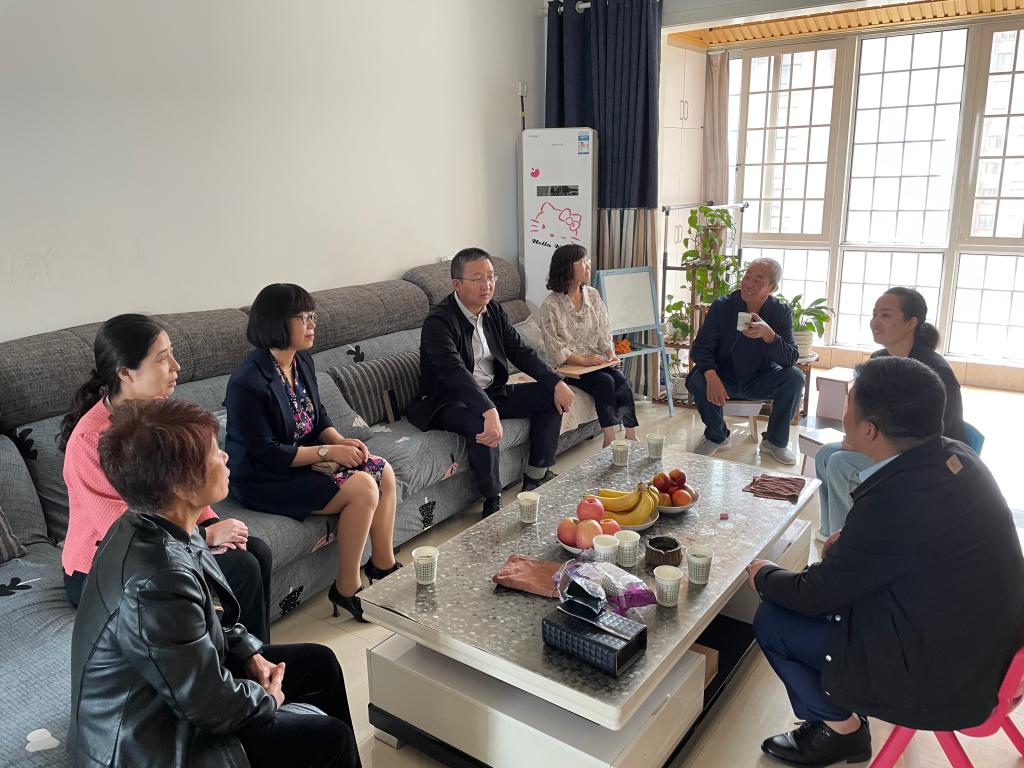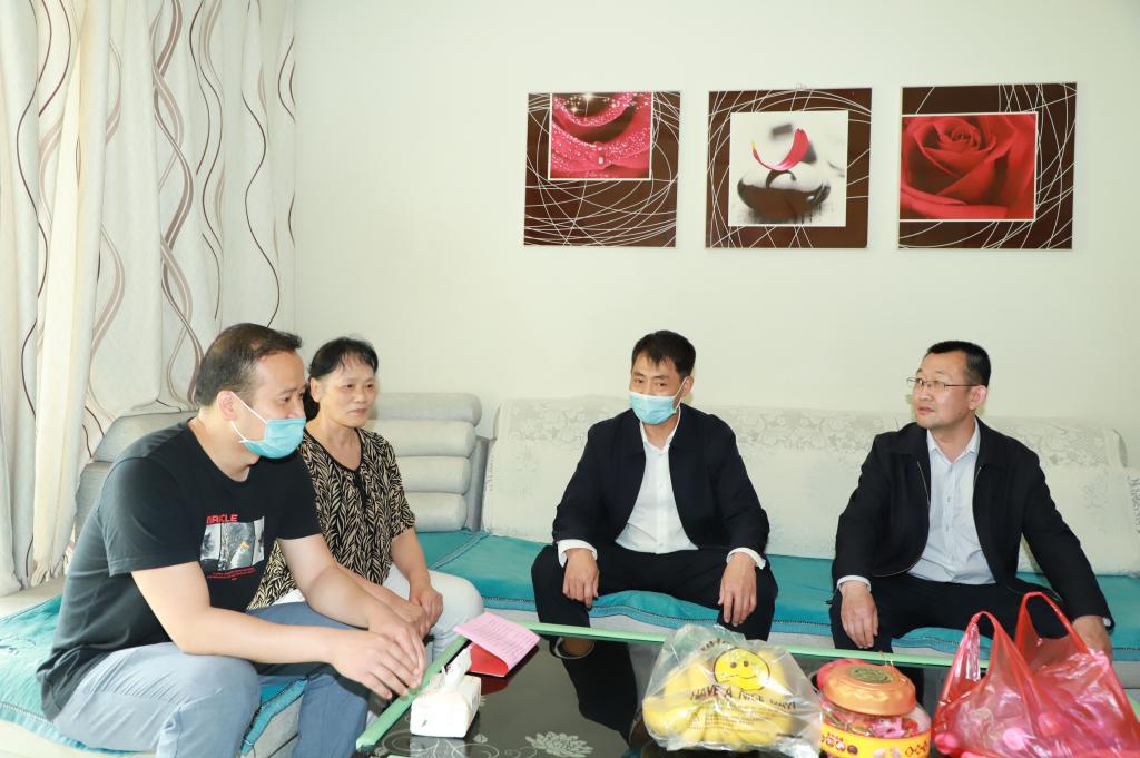翟玉宝一行看望了渭南援沪医疗队员、我院骨二科护师史淑荣的家属,对他们默默付出、无私奉献的精神表示真诚的感谢。他说,希望家属们继续支持前线家人的工作,做他们坚强的后盾,让他们全身心投入抗击疫情的最前线。同时要求,各相关部门要以细致的举措、暖心的服务,做好援沪医疗队各项服务保障,切实关心照顾好一线医护人员和他们的家属,为前线抗疫人员解除后顾之忧,全力打好打赢疫情防控这场大仗、硬仗。