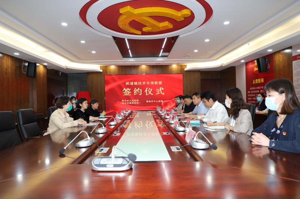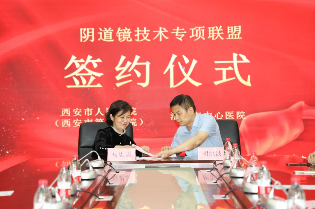 5月13日,西安市人民医院(西安市第四医院)与MILAN.COM阴道镜技术专项联盟举行签约揭牌仪式。西安市人民医院基层服务科、急诊重症病院主任马思蕊,阴道镜诊疗中心主任戴瑜平,MILAN.COM副院长胡洪波、党委委员王保全、医务科副科长刘韬、妇科主任雷红等参加仪式。