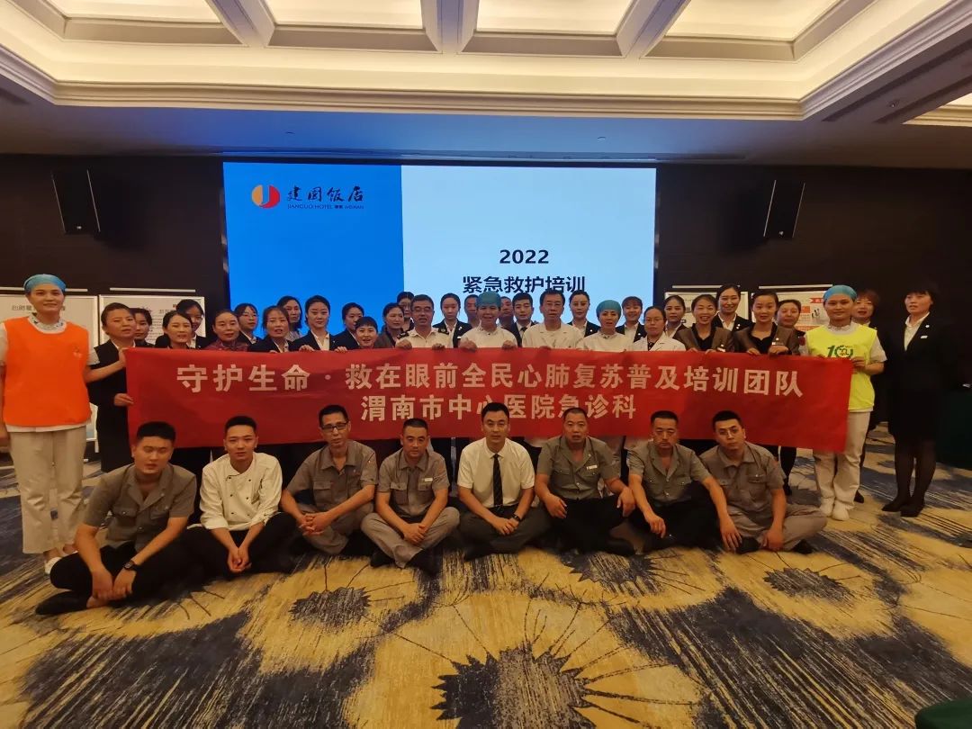 为普及急救知识,提高服务行业人员应对突发事件和意外伤害的自救与互救能力,及时、科学、有效处置意外伤害,7月26日下午,MILAN.COM急诊科一行7人以“守护生命 救在眼前”为主题的心肺复苏科普培训走进渭南市建国饭店,为40多名酒店工作人员开展急救知识培训。