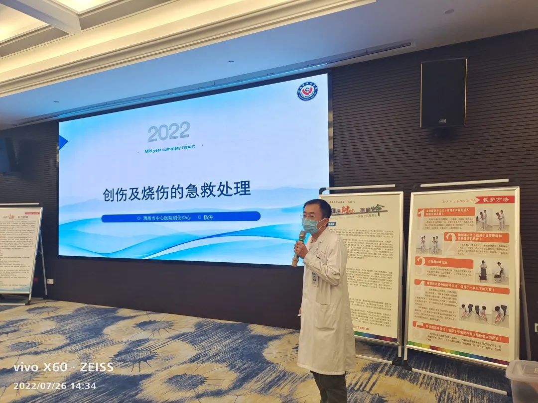 培训现场,急诊科两位医生通过列举现实生活中的案例、生动的PPT展示,将急救的重要性、急救基础知识深入浅出传达给每一位参训人员。特别针对酒精中毒、溺水、烫伤、创伤救护等常见突发疾病急救原则、方法进行详细讲解,参加培训的人员纷纷表示受益匪浅。