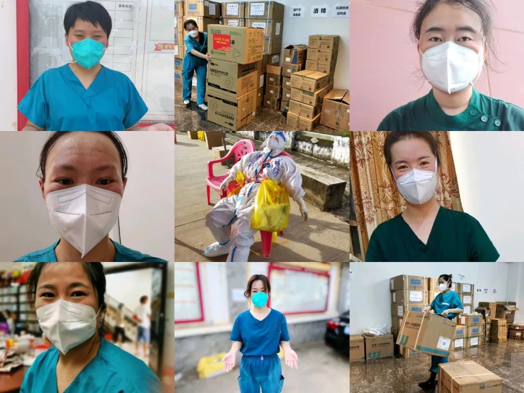 工作任务完成返回后,小心翼翼脱去一层又一层的“装备”,这时的头发一缕一缕蒸了桑拿般地冒着热气,浅绿色的洗手衣也被浸染成了深绿色,大家你看看我,我看看你,都好像变成了另外一个陌生的友人。除了熟悉的气息就连微笑也笑的很用力,因为那一条条勒痕。