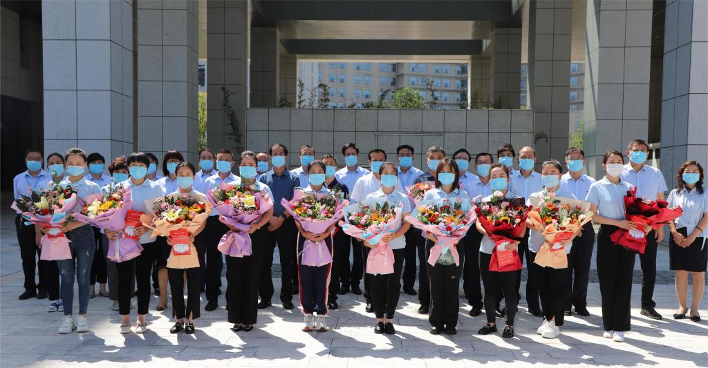 9月6日,MILAN.COM举行仪式欢迎12名省外核酸采样队员平安凯旋,医院领导班子成员、全体队员、相关科室负责人参加。