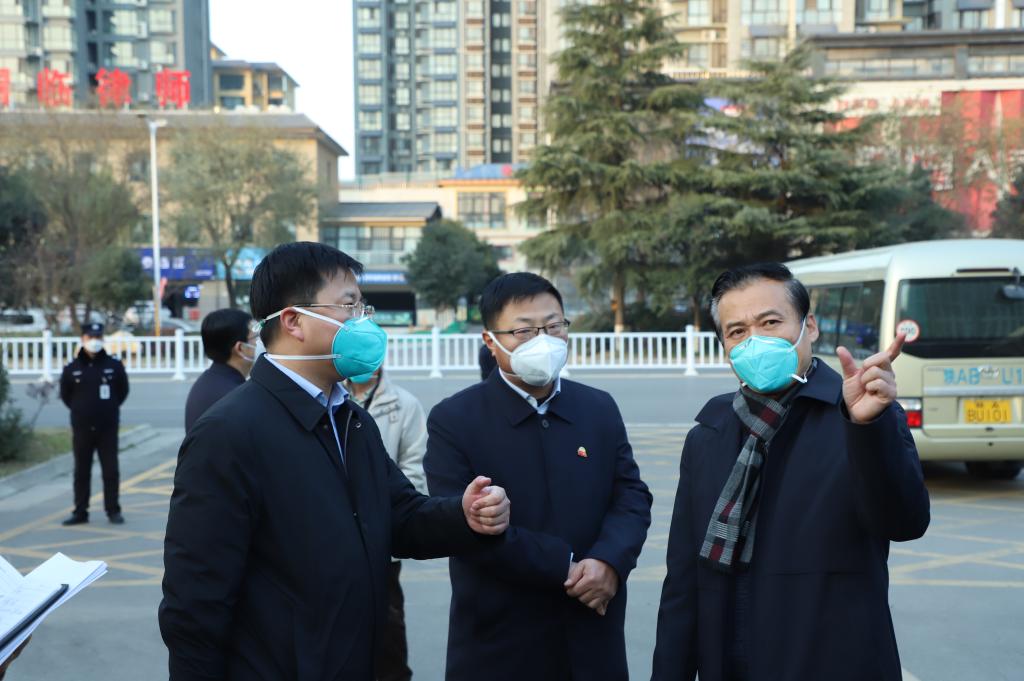 督导组先后来到预检分诊、急诊缓冲区、重症医学科、发热门诊实地了解情况。医院相关负责人就医疗资源储备与利用,发热门诊、定点医院与隔离病房收治情况,药品和检测试剂储备等工作进行汇报。