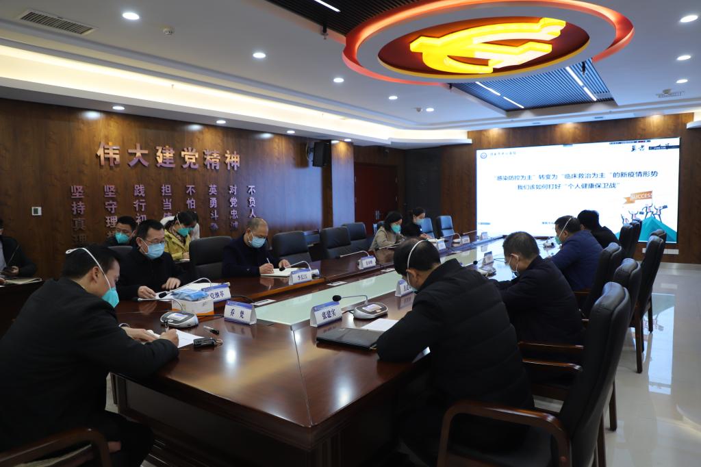 12月20日下午,市中心医院召开疫情防控线上培训慰问会,院领导、相关科室负责人部分职工参会。