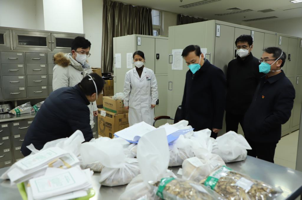 督导组先后深入急诊、药品库房、重症医学科、发热门诊等处实地查看,重点询问了医院职工新冠疫苗接种、医疗资源储备与利用、药品和检测试剂储备,以及发热患者接诊等情况。院长乔梵汇报了医院规划布局、设施条件、物资和设备配备和定点救治医院人员配备等相关情况。