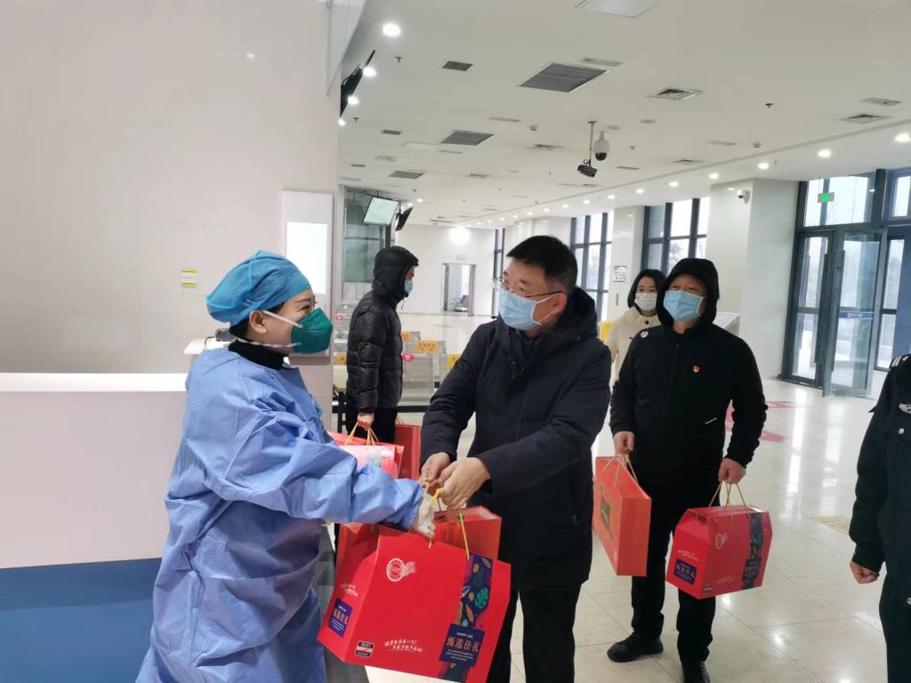 虎年已去春风暖,兔岁乍来喜气浓。大年初一一大早,市卫健委党组书记、中心医院党委书记张荣岗,院长乔梵及领导班子成员来到医院临床一线,慰问节日坚守岗位、奋战一线的医务人员,为大家送上新春的祝福。