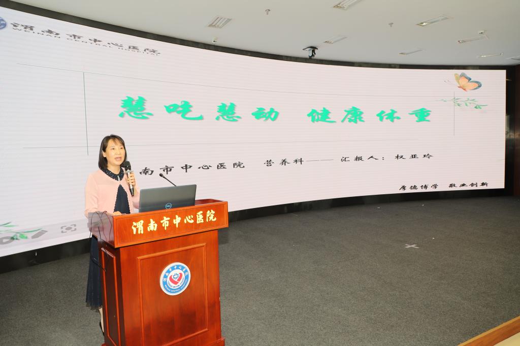 会上,黄庆珍副主席对活动方案进行介绍。她表示,本次活动旨在以解决职工肥胖问题为导向,创新为职工服务模式,减少职工慢性病发生率,为医院团队稳定发展提供保障。随后,营养科副科长权亚玲以“中国居民营养分析”为切入点,向大家讲解肥胖防控技巧和方法,倡导大家“慧吃慧动”,保持健康体重。