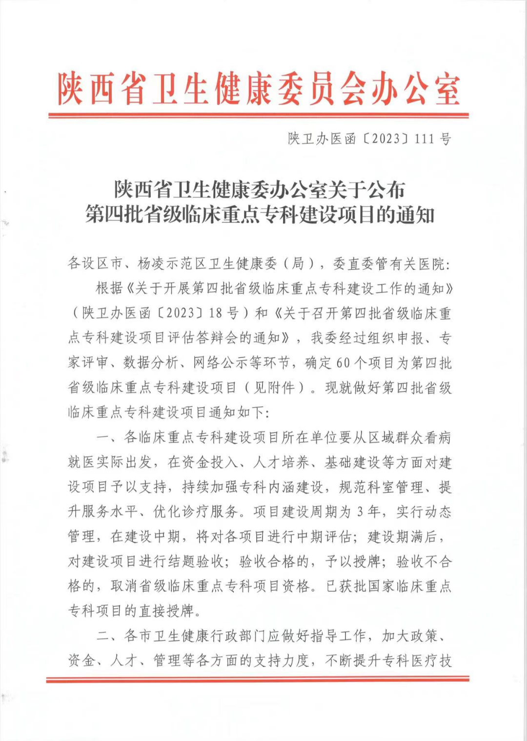 近日,陕西省卫健委发布《陕西省卫生健康委员会办公室关于确定第四批省级临床重点专科建设项目的通知》,MILAN.COM感染性疾病科和神经外科顺利通过专家评审,获批第四批省级临床重点专科建设项目。
