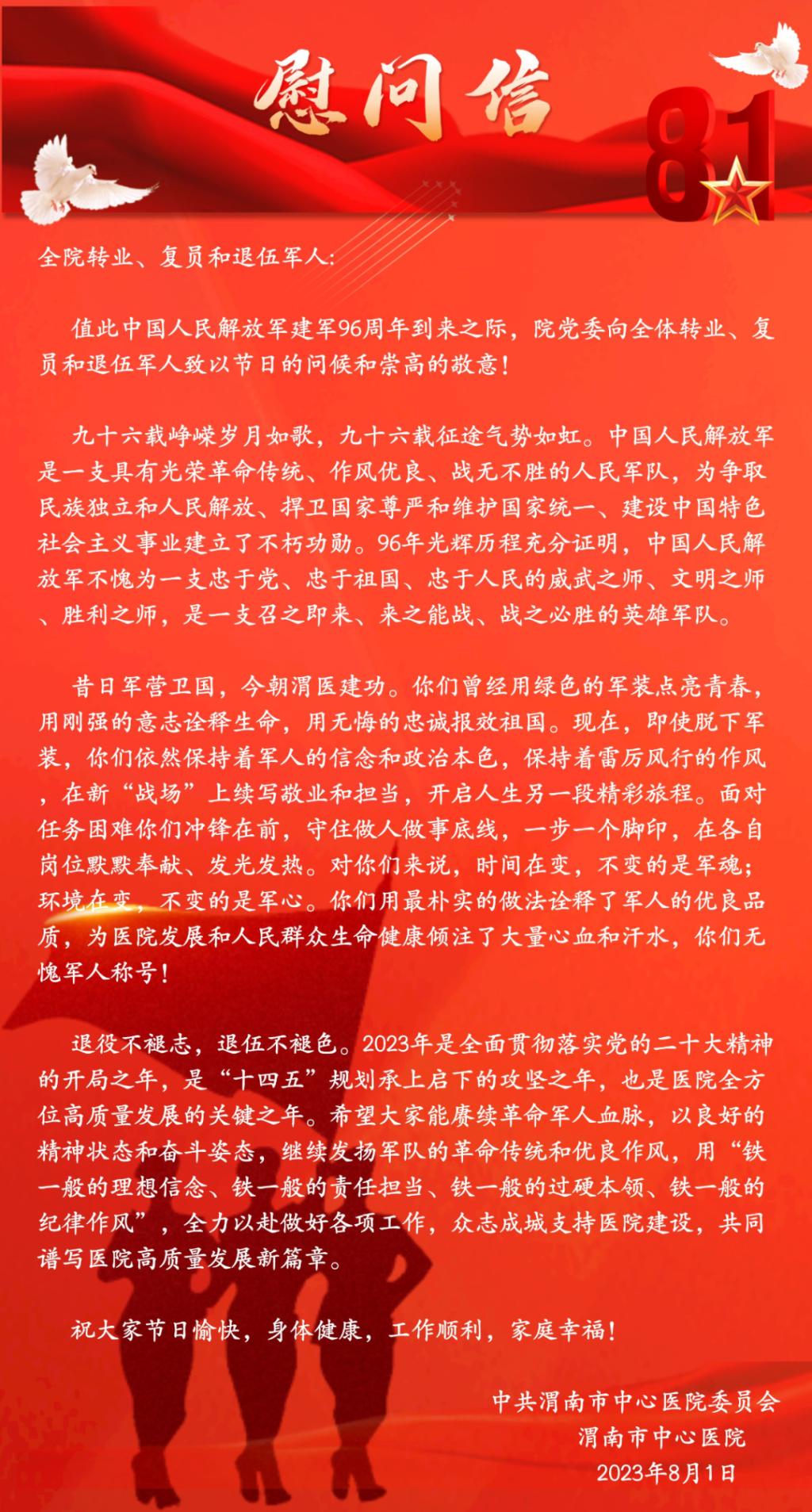 致全院退伍军人的慰问信