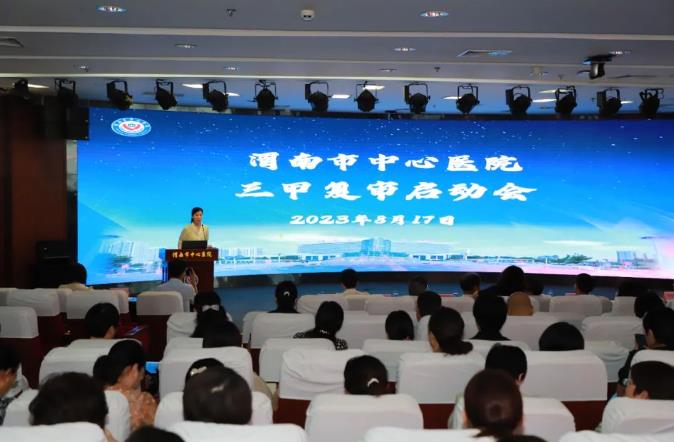 为进一步推进医院三甲复审迎检工作,抓好问题整改,达到以评促建、以评促改、重在内涵目的,8月17日下午,市中心医院组织召开三甲复审启动会。医院领导班子成员、中层干部、中青年医师等200余人参会。会议由副院长李红兵主持。