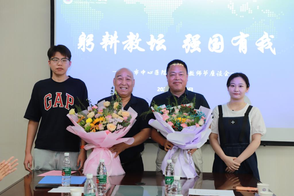 座谈会上,一束束鲜花情暖佳节,一声声问候致敬芳华,住培学员代表们向带教老师们献花。