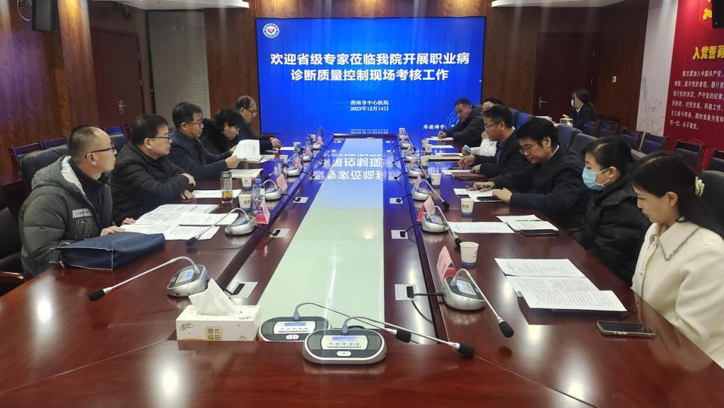 副院长李红兵汇报医院职业健康体检及职业病诊断工作相关情况,专家组一行对医院注册资质、职业病诊断批准、开展业务范围及人员资质、设备情况、职业病诊断流程、系统信息上报等方面信息进行核查,并对其合规性进行综合评估。同时到放射科、CT&MR影像科等相关专业科室进行现场检查、指导。