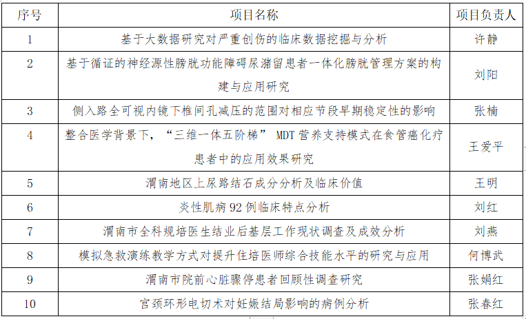 10项课题的立项不仅体现了医院在科研领域的优势,也为医院持续发展注入了新的活力。各位课题负责人和团队成员将以此次立项为契机,充分发挥科研创新能力,为医疗事业的发展作出更大贡献。
