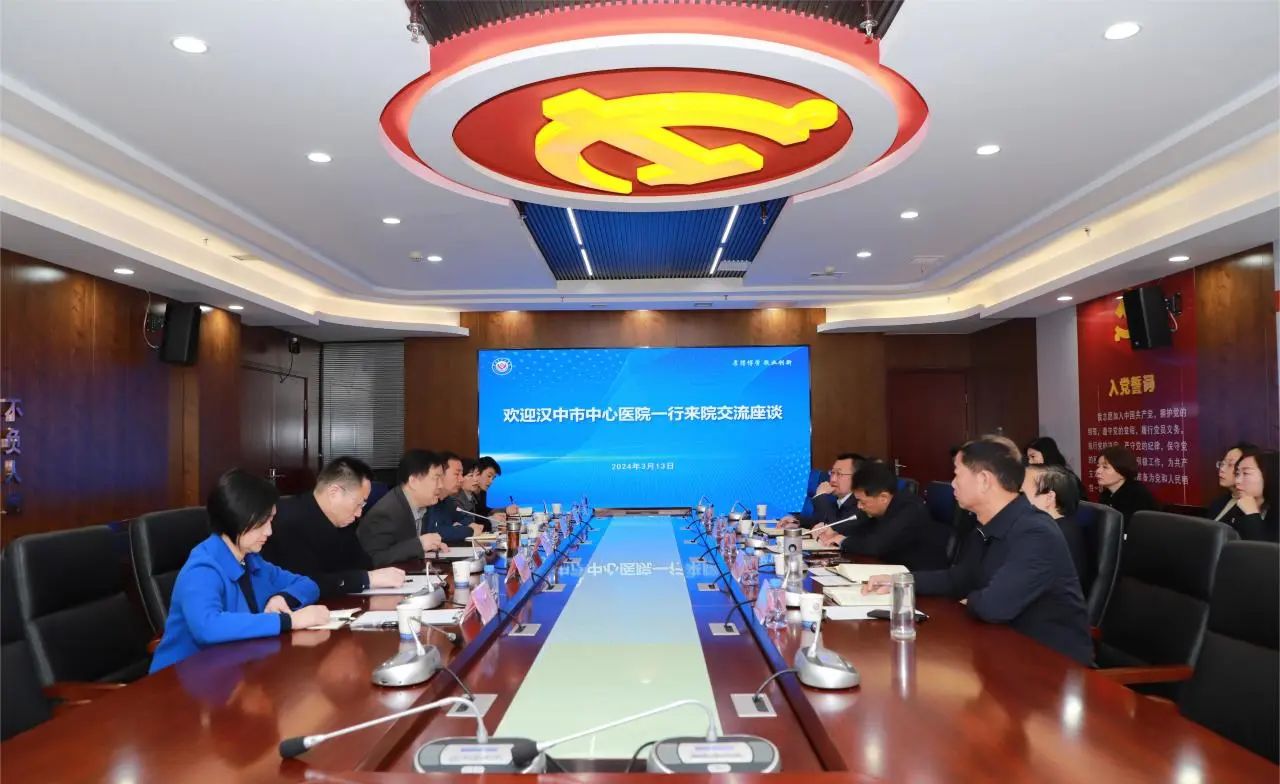 3月13日,汉中市中心医院党委书记李国强一行来到MILAN.COM,就党建、人事、医务等工作进行学习、交流。MILAN.COM党委书记易新松、院长乔梵、部分院领导及相关职能科室负责人参加。