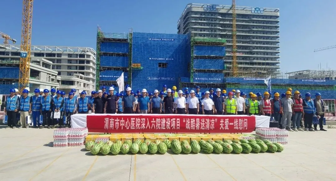8月13日上午,市中心医院党委书记易新松、院长乔梵等一行来到渭南市第六医院建设项目工地,看望慰问施工人员。