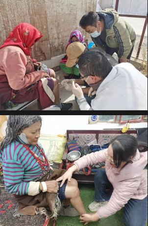 革吉县卫生健康委副主任赵培军、县人民医院副院长益西旺姆带队,市中心医院援藏医疗队联合联勤保障部队第967医院共10余人组成专家组。一周时间里,专家组驱车行程1500多公里,巡诊覆盖革吉县四乡一镇,组织大型义诊4场,接诊患者600多人次。他们为就诊群众测量血压、心电、血糖;为基层医务人员培训妇产、传染病、康复疼痛、消化病、创伤急救、包扎固定、心肺复苏等专业技能;深入乡村、寺院、群众家里送医送药;指导与完成膝关节退行性变关节腔内注射改良消炎镇痛针20余例。