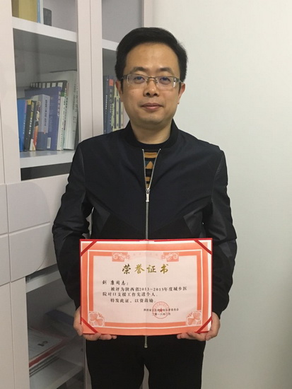 近日,省卫生计生委对陕西省2013-2015年度城乡医院对口支援先进集体和个人进行表彰,我院CT室刘康荣获“陕西省2013-2015年度城乡医院对口支援工作先进个人”荣誉称号。