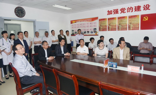 调研组一行先后深入我院部分科室,并与医务人员、就诊患者面对面交流,我院院长张进社为调研组详细介绍了医院建设、管理运行、专业人才引进及医疗服务质量等情况。对于医改问题,戴主任很是重视,他详细了解了我院的分级诊疗工作,当听到我们采取了一系列举措,加强上下联动,积极探索与上级医院、基层医院建立“医联体”,全力推动分级诊疗工作时,频频点头,对我们所做工作表示赞许。他希望我院进一步建立完善的符合渭南地区实际的分级诊疗制度,努力为百姓解决更多的医疗难题。