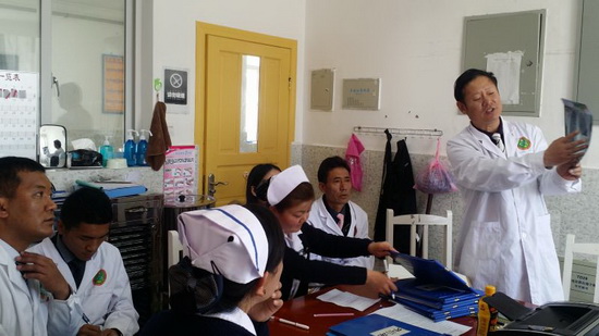 在进藏工作的日子里,他和阿里地区人民医院外科行政主任、本次医疗队的“老大哥”、西安交大一附院普外的陈进才专家联系最多。他们一直在临床第一线工作,为了提高大家的学习兴趣,加快医学知识的巩固与更新,提高外科的团队凝聚力和战斗力,今年一开春,就提出了“一个目标,两个基本点,五个常态化”的外科管理思路。即以打造学习型团队、外科健康快速发展为目标,坚持医疗质量和安全两个基本点,狠抓五个常态化:即读书报告常态化,主任医师查房常态化,专题讲座常态化,精品手术常态化,合格病历常态化。经过几个月的实践,切实加强了医疗安全。目前,在阿里医院,工作的制度化、规范化已形成,良好的习惯蔚然成风,医院医疗质量明显提高。