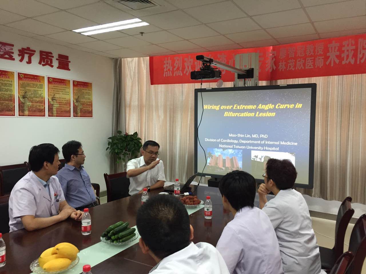 术后,两位台湾教授又来到心内科示教室,与心内科全体医生一起召开了精彩的学术讨论会。会议由李军农主任主持,林茂欣教授主讲,针对“导丝如何通过冠脉复杂分支病变的操作技术”进行了精彩的讲解。期间,还就日常工作中遇到的各种问题、困惑及难题进行了交流。两位教授并耐心而专业地回答了医生的提问。通过全天手术实战交流及学术讨论,林教授一行对我院心内科的工作给予了充分的肯定及高度的赞扬。这有力说明了MILAN.COM心内科医师团队日益强大,这是我们MILAN.COM的骄傲!只有这样,我们才能为我们渭南人民的健康保驾护航!