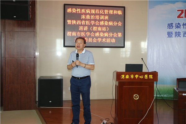 7月16日,市继续医学教育项目——感染性疾病规范化管理和临床救治培训班暨陕西省医学会感染病分会巡讲(渭南站)、渭南市医学会感染病分会第三届委员会学术活动在我院学术报告厅举行。西安交通大学第一附属医院感染科主任、陕西省感染病学会主任委员赵英仁教授,西安交大一附院感染科副教授、陕西省医学会感染病分会秘书陈天艳副教授,中国人民解放军第四军医大学唐都医院感染病科副主任、副教授张颖,渭南市医学会王建宁主任,我院党委书记鲁海燕,医务科周东升主任,感染内科副主任李红兵、独晓勤以及全市从事感染病专业的医务人员、我院规培学生近二百人参加本次学术活动。活动由我院感染内科王峰志副主任主持。