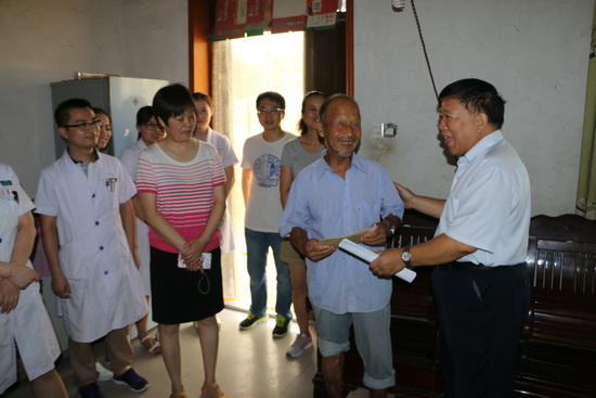 薛郭仓调研员跟王大爷热情交谈,并且对王大爷送上全院职工的祝福。当他把全院医护人员的爱心捐款送到王大爷手里时,大爷眼眶湿润了,除了感谢还是感谢......医务人员们关切地询问王大爷出院后的情况,并逐一交代了今后应该注意的问题,嘱咐他随时来院复查。