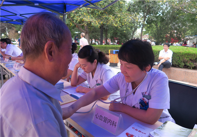 8:30分,义诊现场,前来咨询、查体的市民们围满了现场在座专家。来自心内科、神经内科、神经外科、普外科、妇科、中医科的28名医务工作者现场为市民免费测量血压、问诊、查体、发放宣传资料和手册,为市民提供义诊服务,解答大家提出的问题。专家们的耐心讲解,认真负责的工作风采赢得了现场就医群众的一致好评。截至义诊结束,我院医护人员发放关于慢性病防治、科室宣传简介等宣传材料400多份,接受200多人次健康咨询。