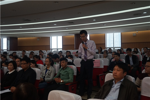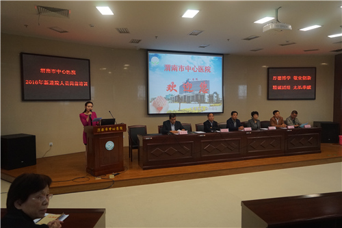 仪式开始前,由我院总务科董利国为大家演唱歌曲《最美的歌儿唱给妈妈》,明快的节奏带动了现场的气氛。随后为参会人员播放我院宣传短片,使参培人员了解我院发展概况。参加2016年度我院岗前培训的新进人员共71人(包括公开招聘大学生,聘用医师,院内聘用人员,规陪学员)。公开招聘的大学生分别做了自我介绍发表了入职感言。