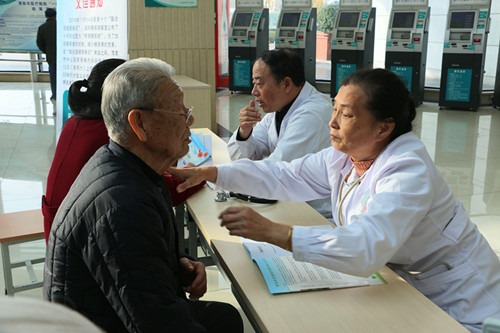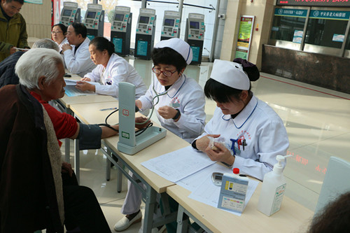 老人今年83了,最近消化不太好,过来找医生诊断开了些药,看见门诊有义诊,就过来想了解一下。经测量,老人血糖和血压都正常。随后护理人员给老人普及了些糖尿病的预防知识。