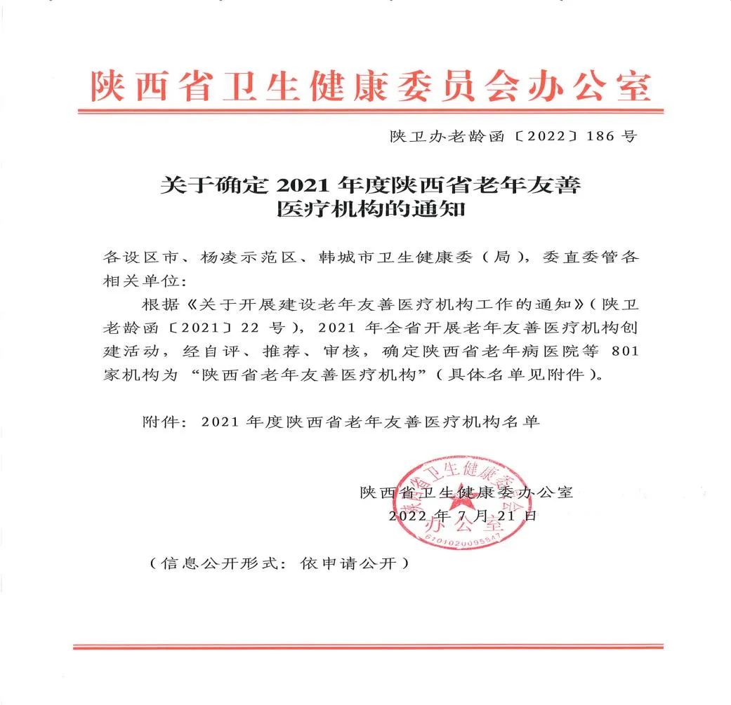 近日,经过自评、推荐、审核,MILAN.COM被陕西省卫生健康委员会评定为“陕西省老年友善医疗机构”,正式授牌。