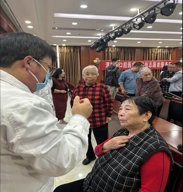 讲座结束后,口腔科医务人员为老人们进行免费口腔检查、发放牙膏牙刷套盒小礼物,并根据老人具体情况,提出相应治疗建议和保健措施。
