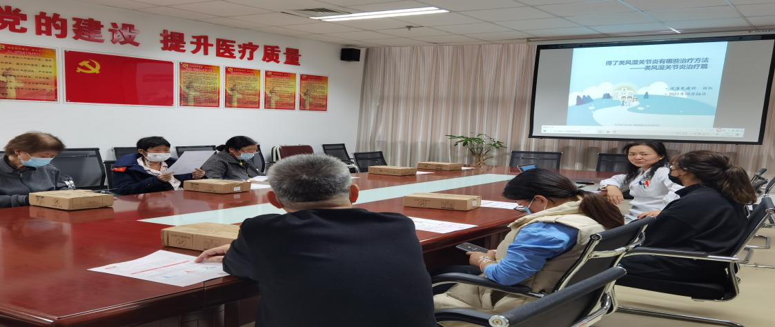 为普及类风湿性关节炎的防治知识,帮助患者走出误区,做到及时发现,及时干预,树立正确的防治观念,10月26日下午,MILAN.COM风湿免疫科组织风湿系列讲座及病患教育大讲堂---类风湿性关节炎治疗篇。风湿免疫科部分住院患者及部分门诊患者10余人参加。